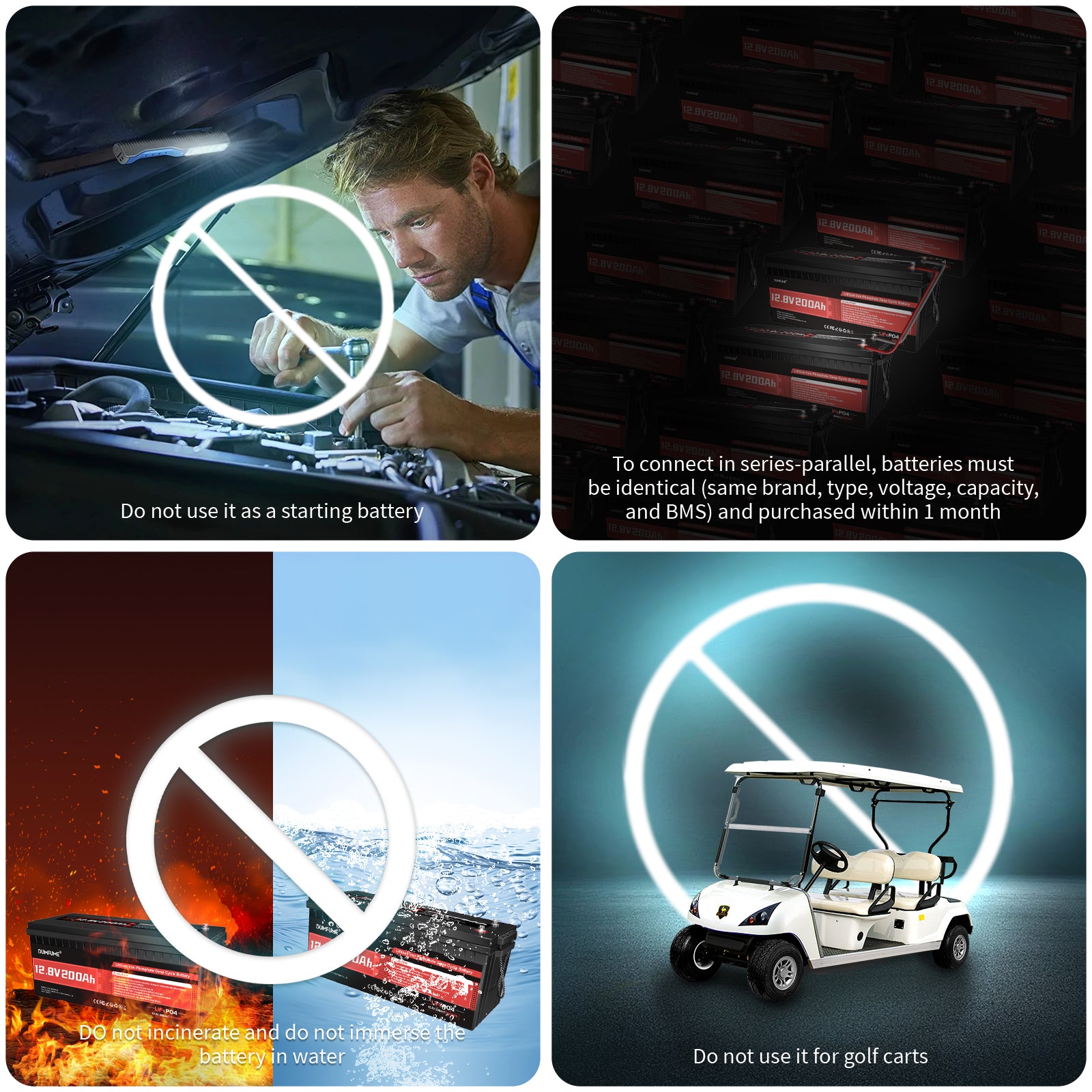 No. These batteries are designed for energy storage only. Do not use them for starting devices, golf carts, or jacks.