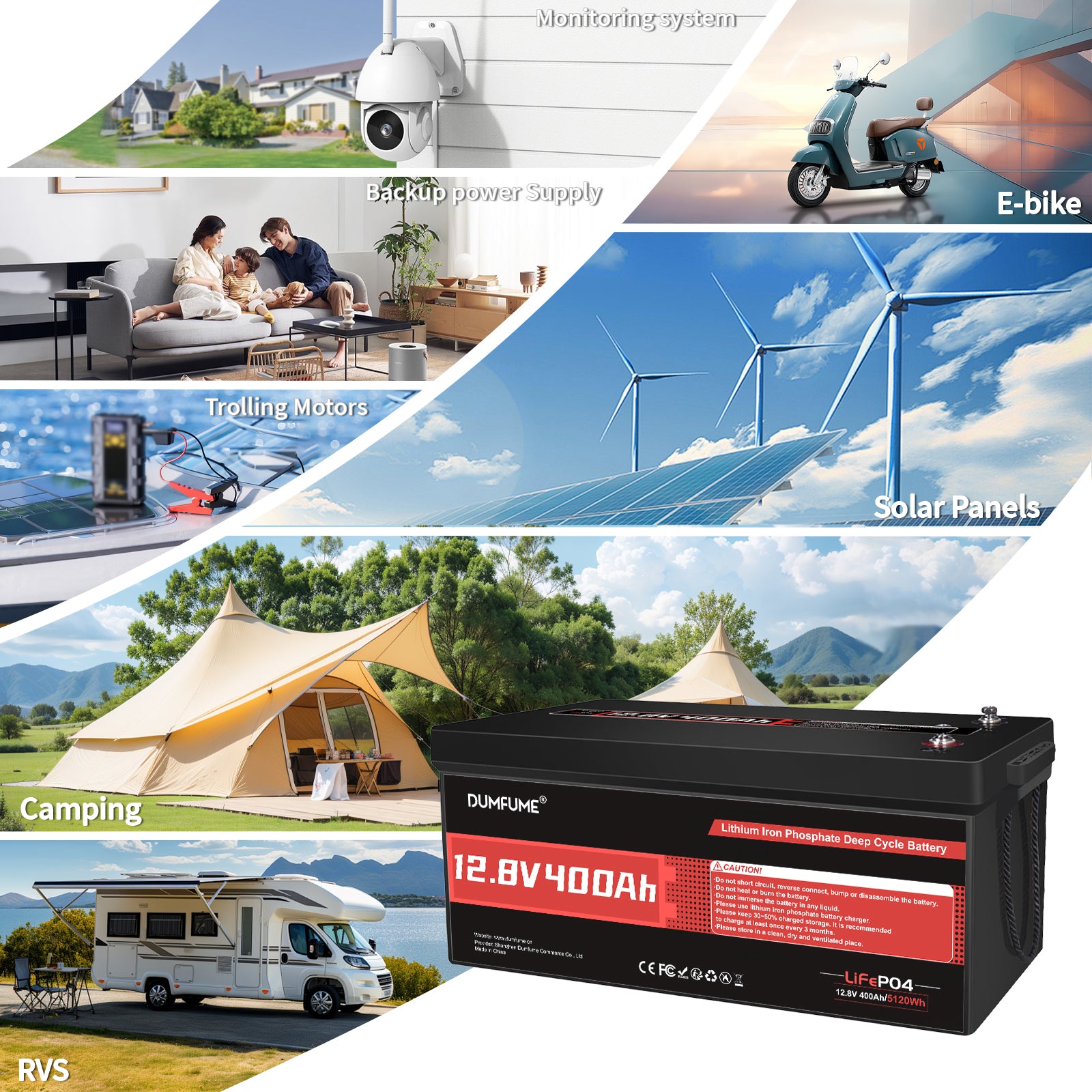 Dumfume 12V 400Ah Deep Cycle Rechargeable LiFePO4 Battery for RV, Solar, Marine, Camping, Off-Grid, Home Energy Storage