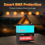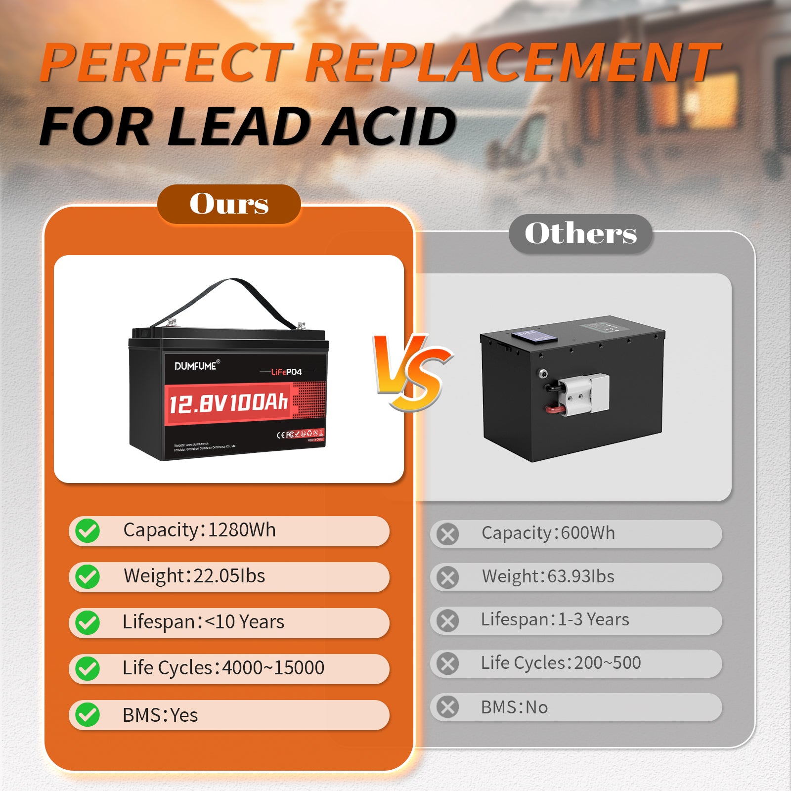 Dumfume 12V 100Ah Deep Cycle Rechargeable LiFePO4 Battery for RV Camping Solar Off-Grid