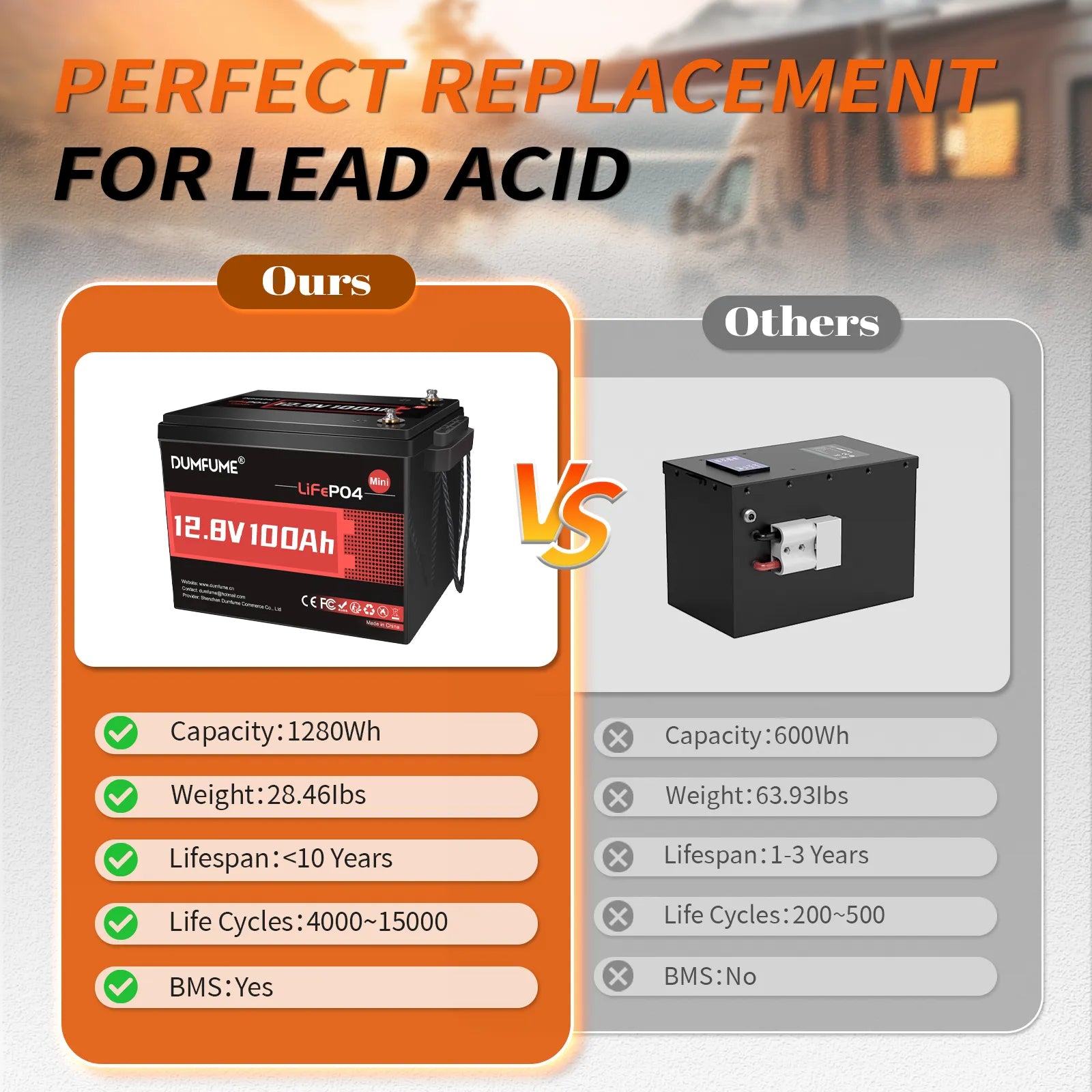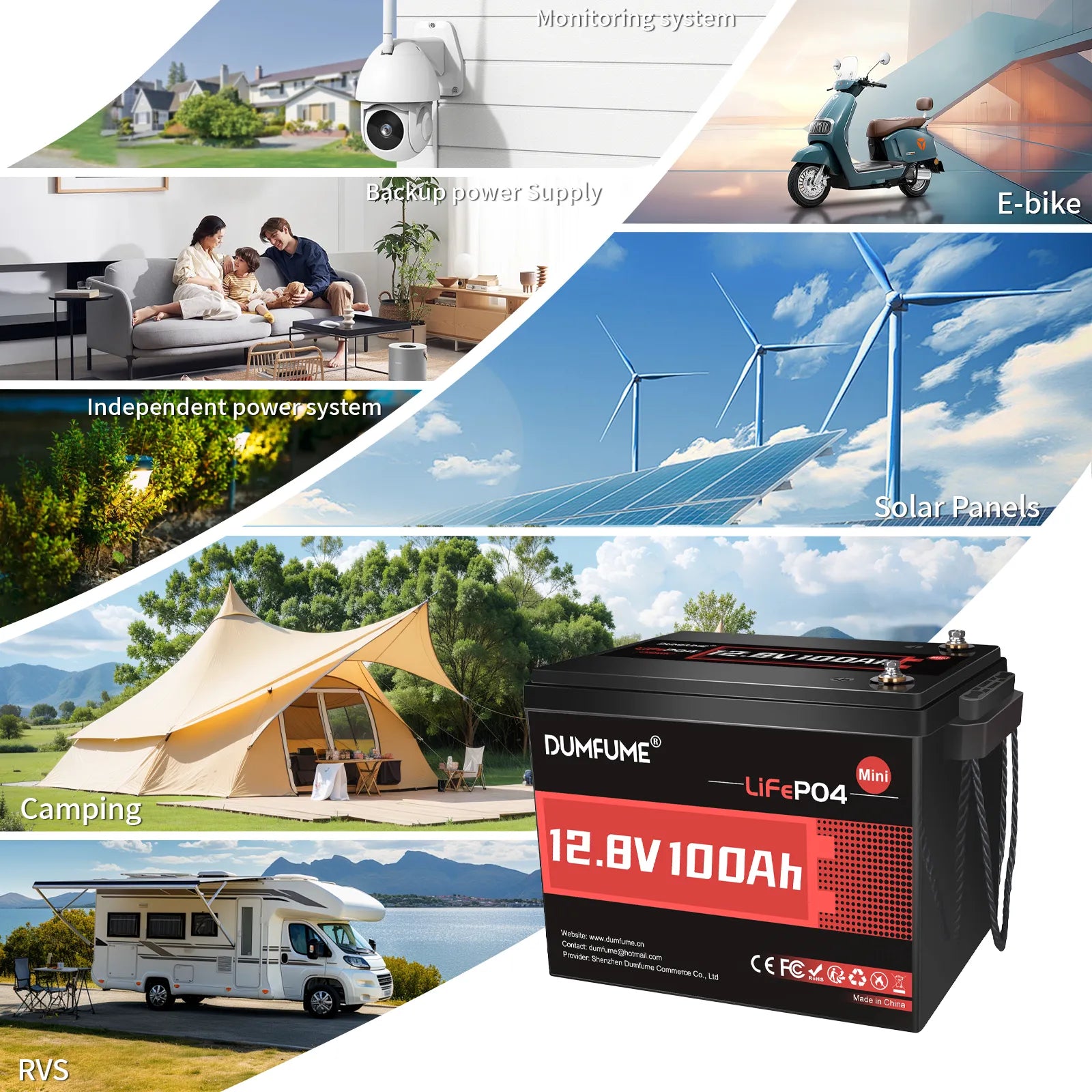 Dumfume 12V 100Ah Mini Max Deep Cycle Rechargeable LiFePO4 Battery for RV Camping Solar Off-Grid