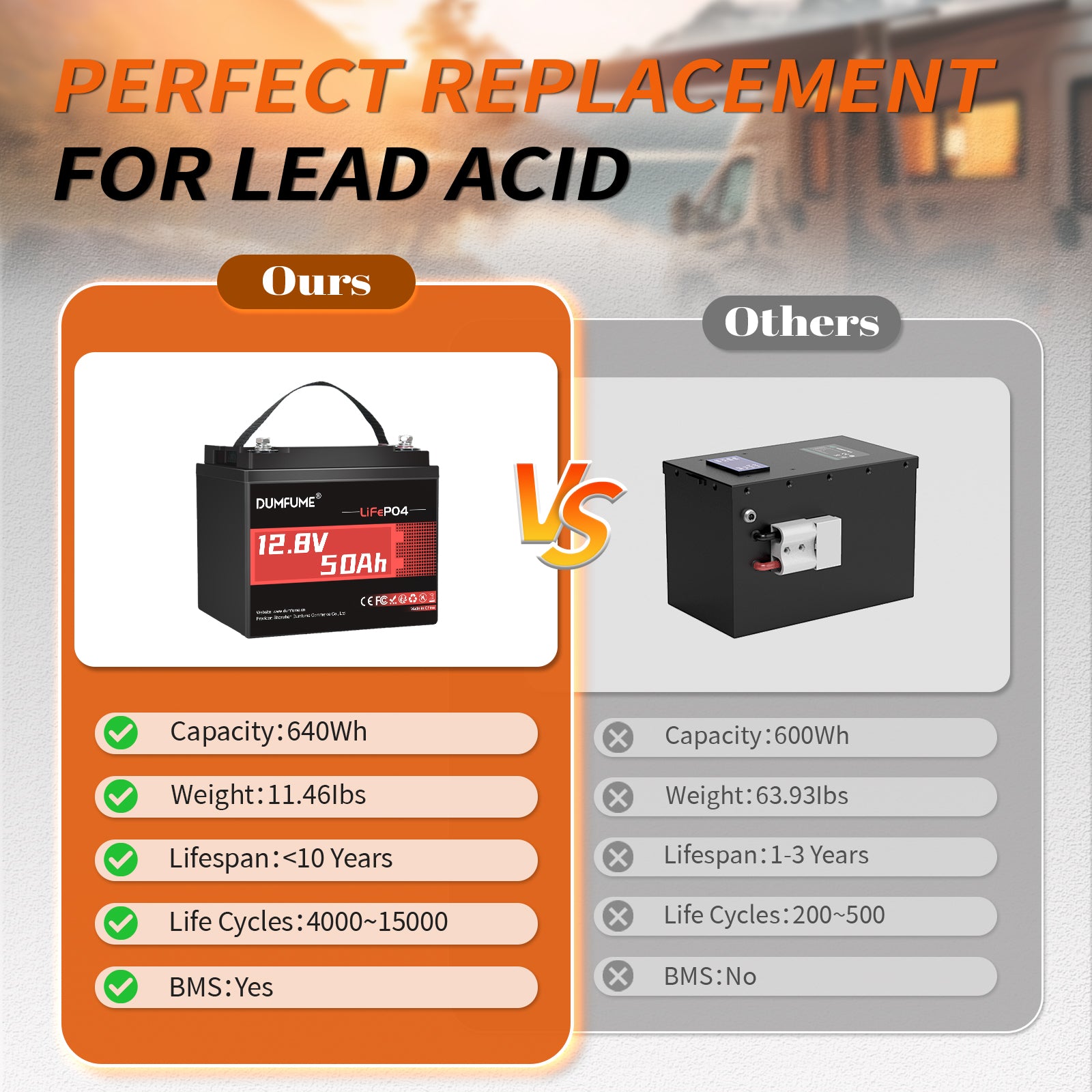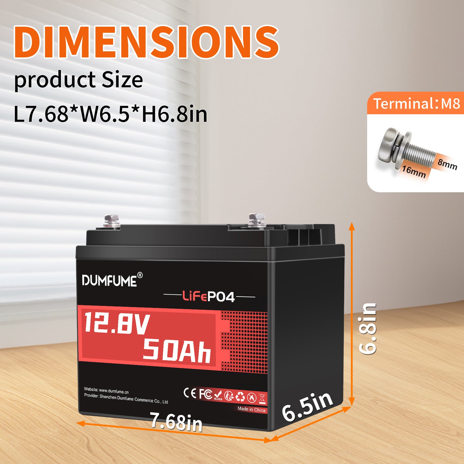 Dumfume 12V 50Ah Deep Cycle Rechargeable LiFePO4 Battery for RV Camping Trolling Motor Marine Solar
